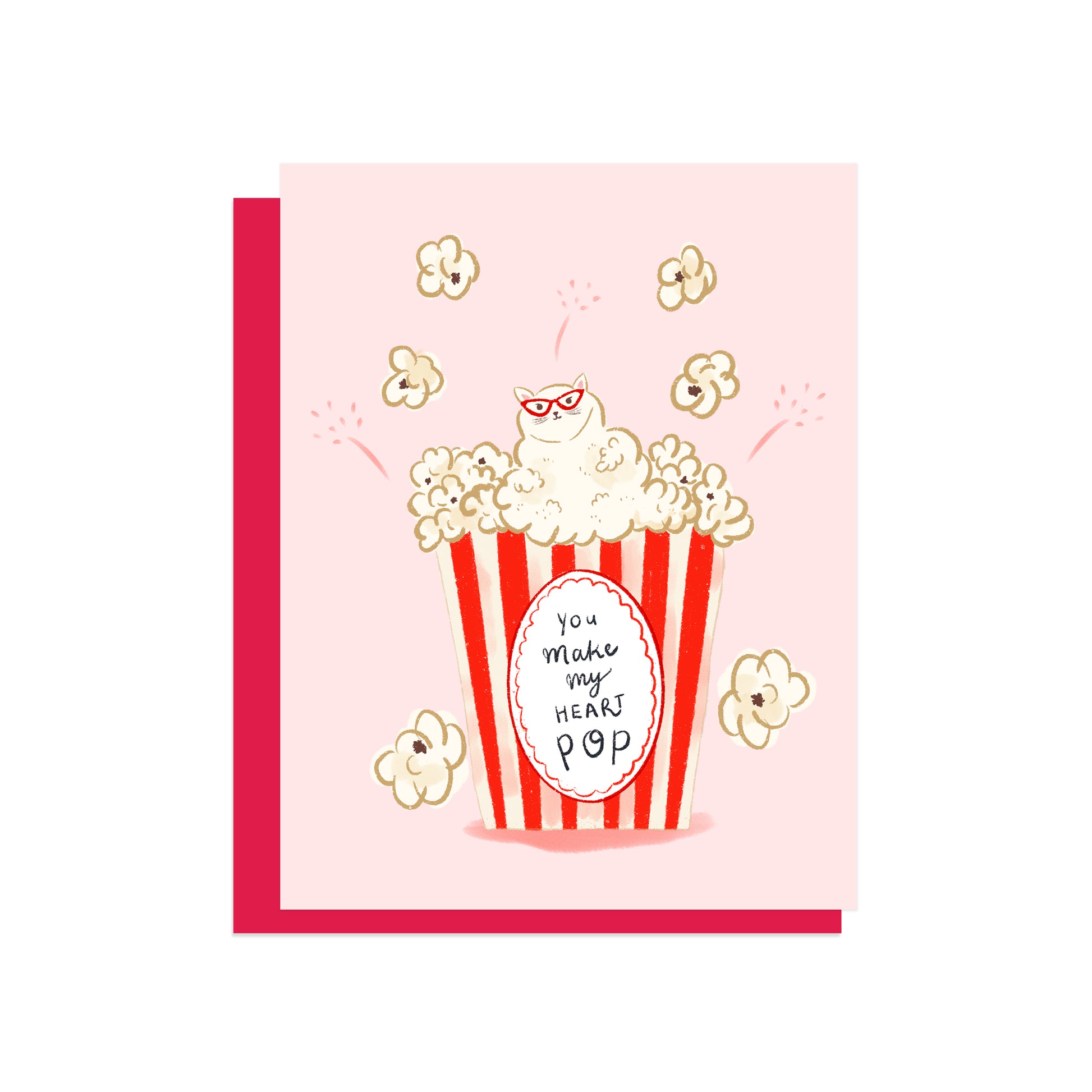 This little cat has claimed the popcorn and your heart. A perfect Valentine greeting card for someone who loves cats, movies, and a whole lot of purr-sonality.